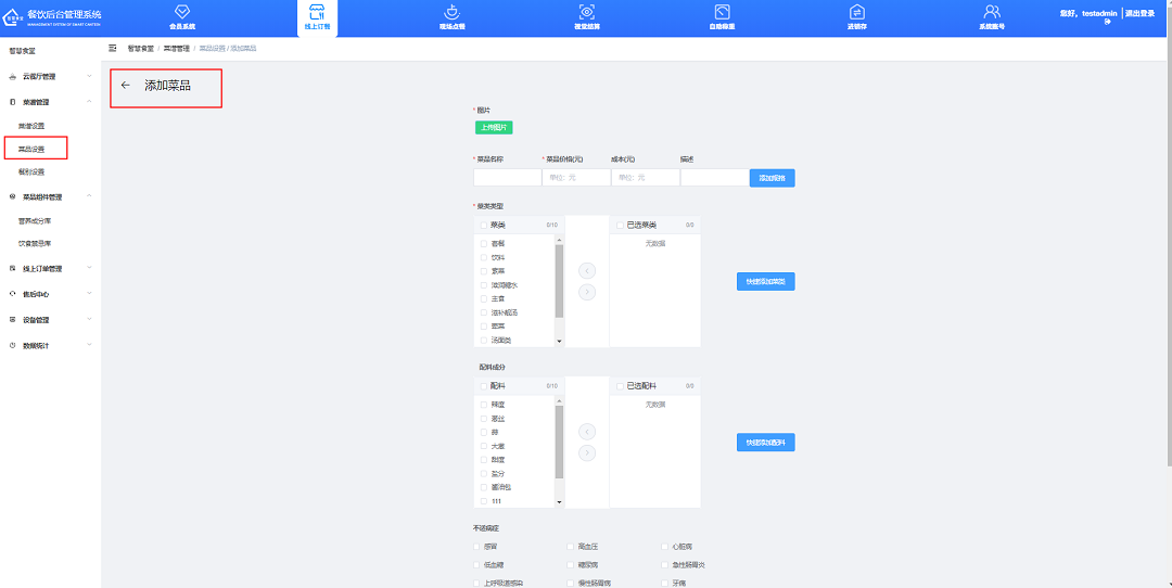 ④勾選不宜進(jìn)食此菜品的特殊病癥(用于醫(yī)院),若無(wú)此需求可不勾選;