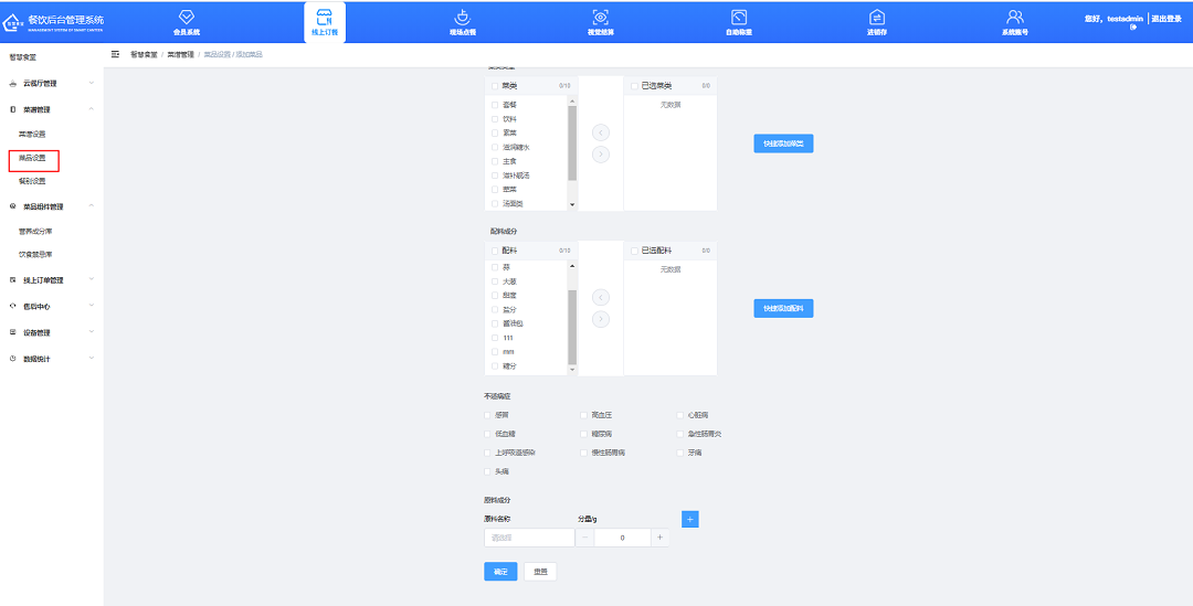 ③選擇菜品所屬的分類(lèi),選擇菜品搭配的配料;