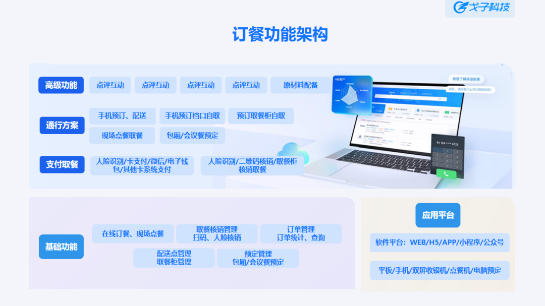 戈子科技在會上展示的戈子科技全場景解決方案以“戈子視覺結算系統(tǒng)”、“智能訂餐”、“智能支付”、“進銷存管理”四個模塊,細分為在線訂餐、智能支付、視覺結算、后臺管理、企業(yè)管控等方面,全面滿足企業(yè)管控,食堂運營,職工就餐的多元化,定制化需求。用“智能+全場景”的方式解決醫(yī)院、學校、企業(yè)、機關食堂管理痛點,致力于促進團餐行業(yè)新變革。