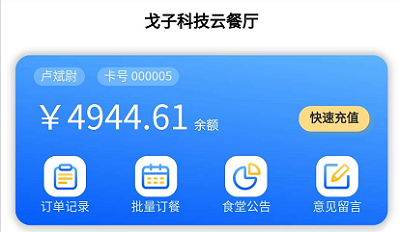 ②點(diǎn)擊“快速充值”按鈕,可進(jìn)入現(xiàn)場(chǎng)充值飯卡頁面