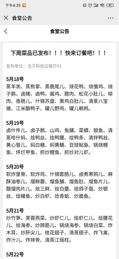 首頁點(diǎn)擊“食堂公告”進(jìn)入,或者點(diǎn)擊新公告發(fā)布時(shí),首頁頂部航條